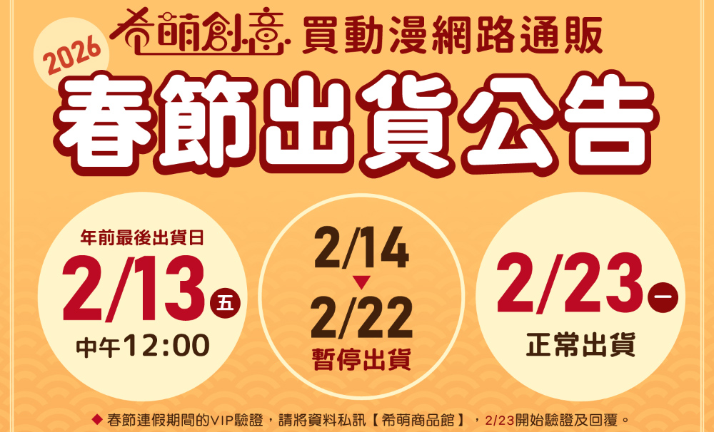 【買動漫-希萌創意】2026春節出貨公告