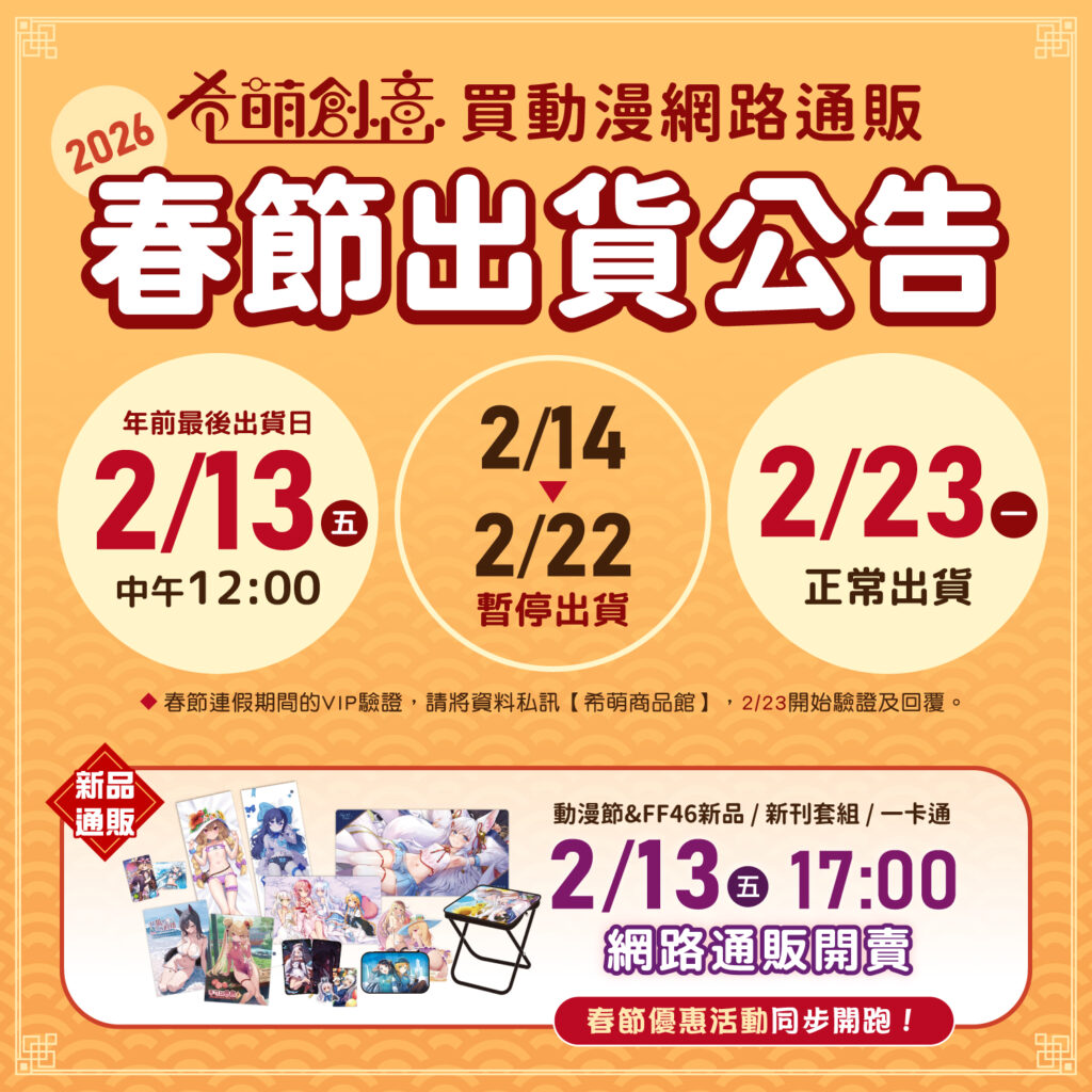 2/13(五)12:00後訂單,2/23(一)起陸續出貨。